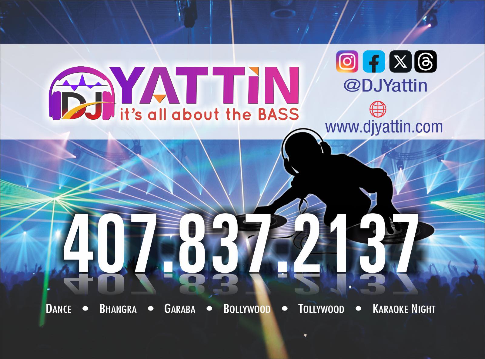 DJ Yattin is a dynamic and versatile DJ with a passion for creating unique and unforgettable musical experiences. His deep understanding of various genres allows him to masterfully blend Bollywood, Punjabi, Tollywood, EDM, Club, Hip Hop, and Rap beats, providing a diverse and engaging performance for all audiences. His journey began with a profound love for music, evolving into a career defined by innovation and energy. What sets DJ Yatin apart is his exceptional ability to connect with the crowd, keeping the dance floor alive and earning him a reputation as a true maestro of beats.
