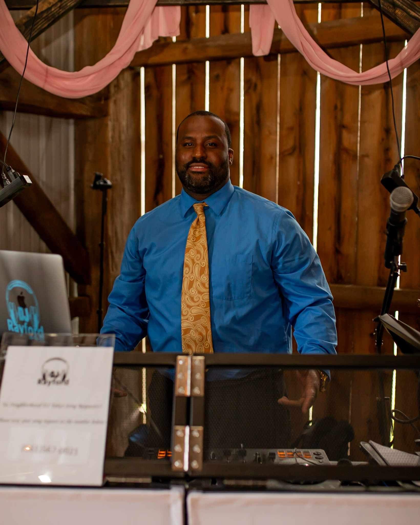 DJ Rayford is the dedicated wedding and mobile event DJ committed to transforming your wedding dreams into reality. Every detail of your reception and ceremony is meticulously planned, ensuring a flawlessly executed special day. Drawing from extensive experience, I excel at adapting in real-time to guarantee a seamless flow, creating a magical atmosphere that deeply resonates with you and your cherished guests.
